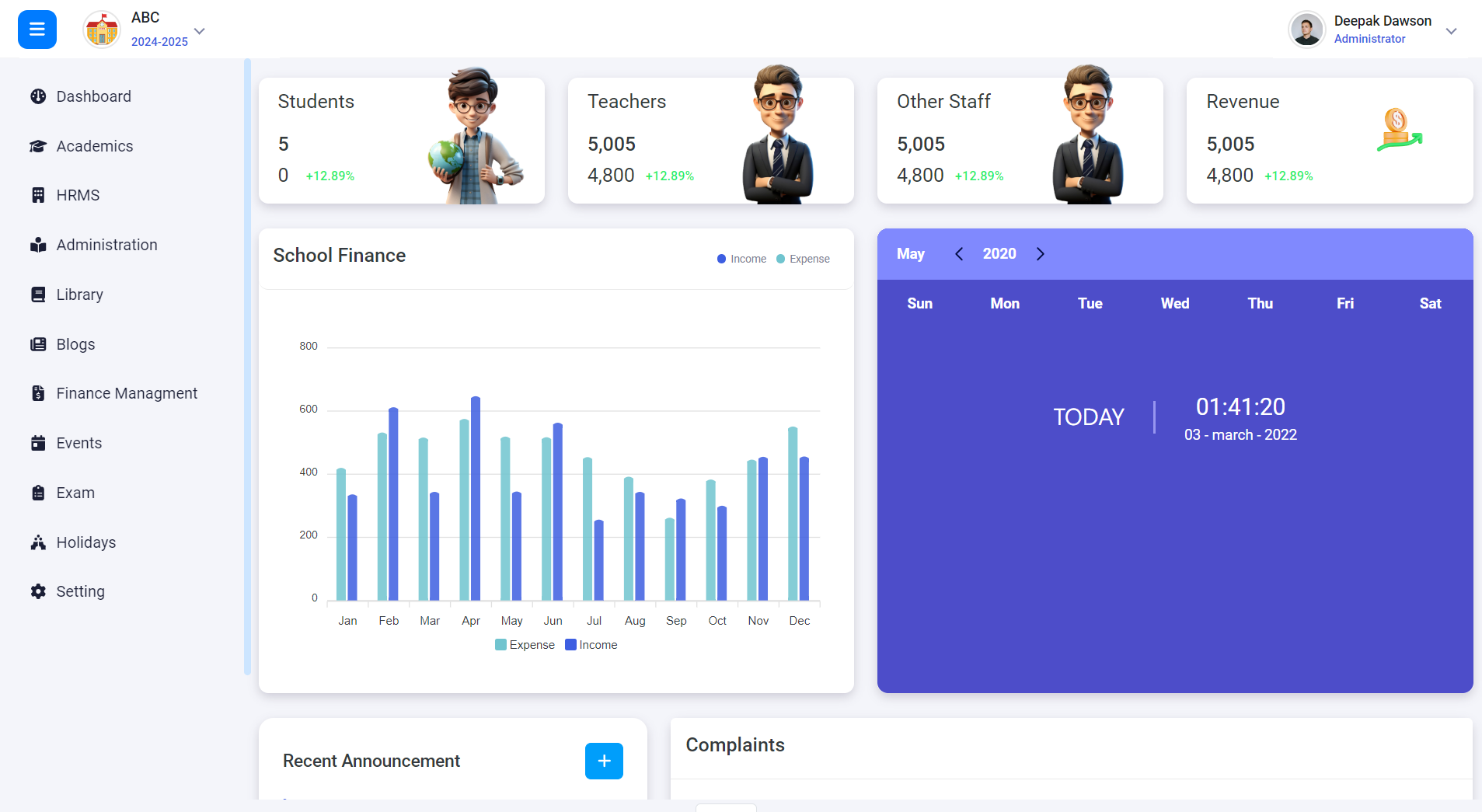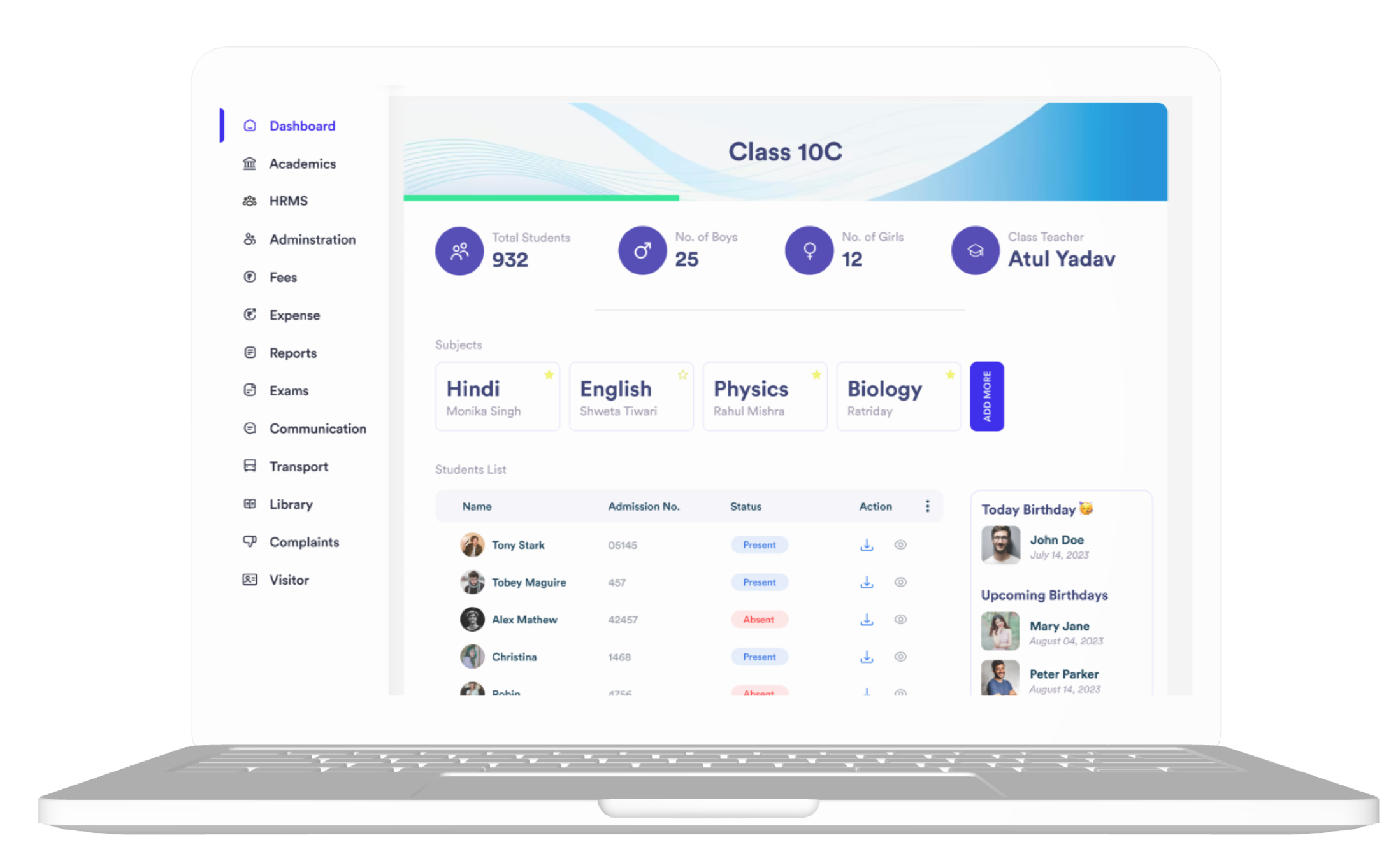 The admin panel centralizes school operations, offering tools for student enrollment, teacher assignments, and financial management. It enables secure access control and real-time reporting, streamlining administrative tasks and enhancing decision-making.